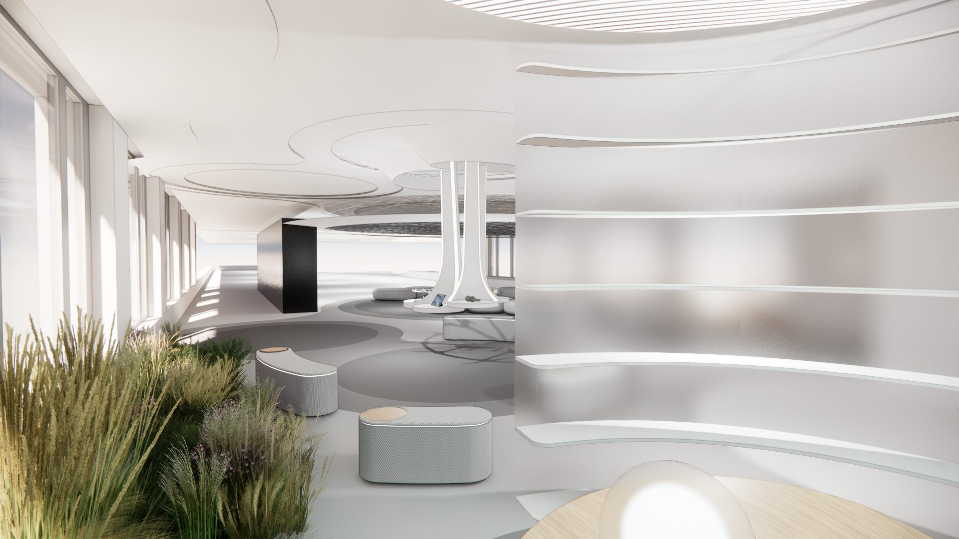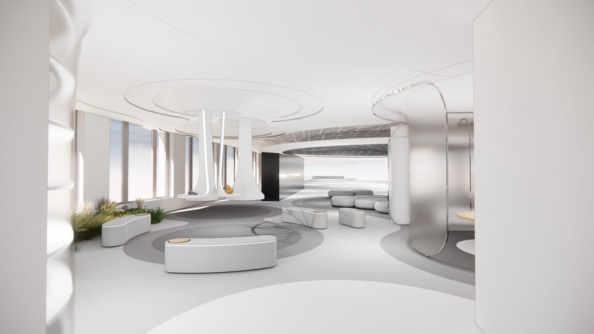 The spatial design allows for seamless transitions between focus, interaction, and reflection. Modular elements create a continuum that can be continuously reconfigured, enabling infinite possibilities across space, time, and mindset. Through heightened immersion, impact, and continuity, the Düsseldorf Greenhouse transforms strategy sessions into extraordinary, multisensory experiences that inspire lasting change.
