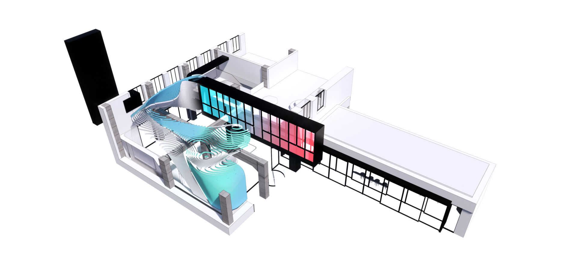 The Hyundai Motorstudio in Beijing’s 798 Art District was redesigned as a hybrid between an exhibition space and an artistic installation. At the centre of the concept stands a fully exposed air-filtration system, transformed into a sculptural object that makes the process of cleaning Beijing’s urban air both visible and experiential. Surrounding this core element, the entire exhibition space was newly developed, creating flexible zones for art, technology, and public engagement. The result is an architectural environment where environmental technology, spatial storytelling, and contemporary culture merge into a singular, immersive experience.
